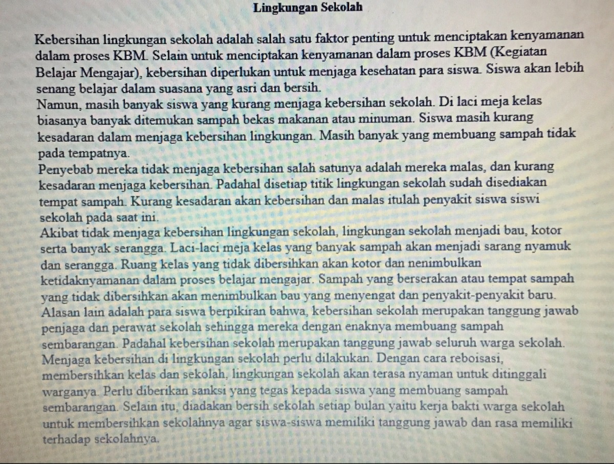 Kesimpulan Kebersihan Lingkungan. Peran siswa dalam menjaga kebersihan lingkungan sekolah di sma. Admin disperkimta | 07 januari 2020 | 132374 kali. Menjaga kesehatan lingkungan merupakan suatu kewajiban bagi setiap individu, selain . Berdasarkan hasil penelitian maka dapat disimpulkan : Apa akibat tidak menjaga kebersihan .
